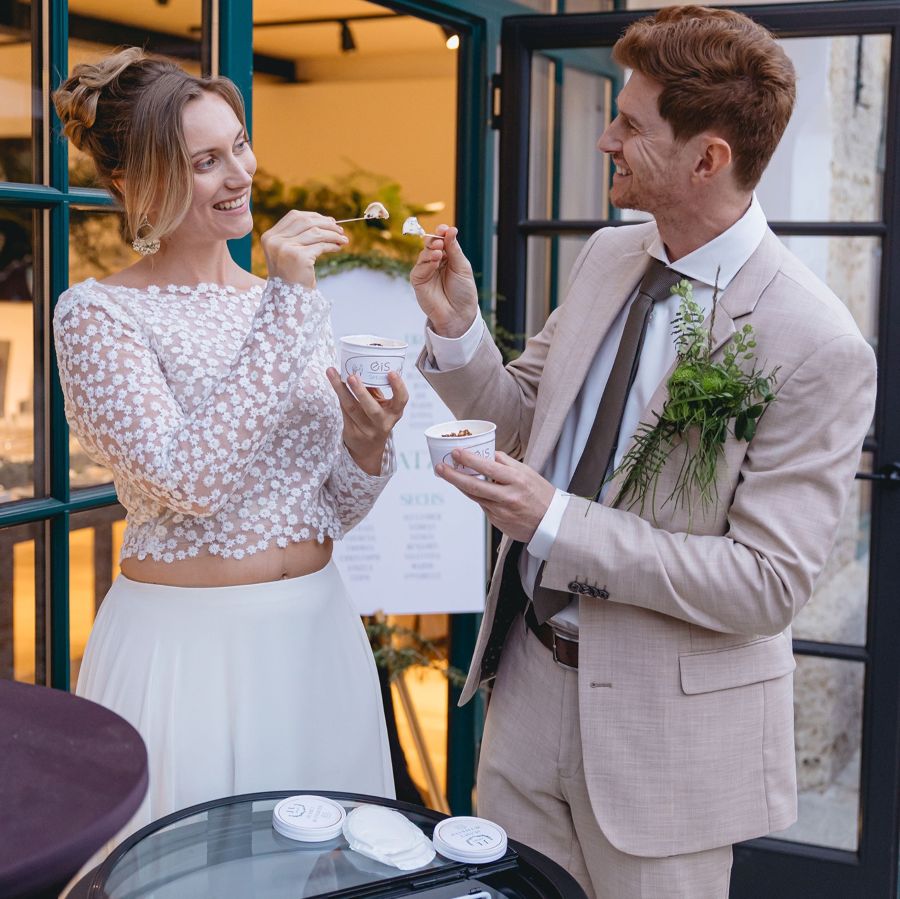 Eis auf eurer Hochzeit begleitet genau die Zeit, in der alle zusammenkommen. Nach dem Ja, zwischen Gesprächen, Umarmungen und Lachen. Fix und fertig portioniert, hochwertig umgesetzt und liebevoll gestaltet. In eurem Stil, euren Farben, mit euren Lieblingssorten. Am Ende bleibt mehr als Eis: ein stilvolles Highlight voller Gefühl.